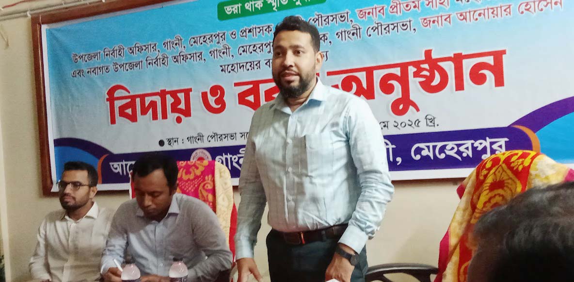 প্রীতম সাহা, উপজেলা নির্বাহী অফিসার ও প্রশাসক, গাংনী পৌরসভার দায়িত্ব হস্তান্তর এবং আনোয়ার হোসেন,উপজেলা নির্বাহী অফিসার, গাংনী, মেহেরপুর ও প্রশাসক, গাংনী পৌরসভার দায়িত্ব গ্রহণের ছবি