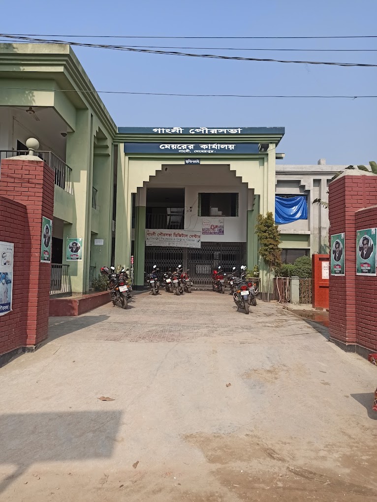 গাংনী বাসষ্ট্যান্ডে নেমে রিক্সা বা অটোতে চলে মহিলা কলেজ মোড় হয়ে সন্ধানী স্কুল এন্ড কলেজ হয়ে আসলেই পৌর অফিস ভবন দেখতে পাবেন।